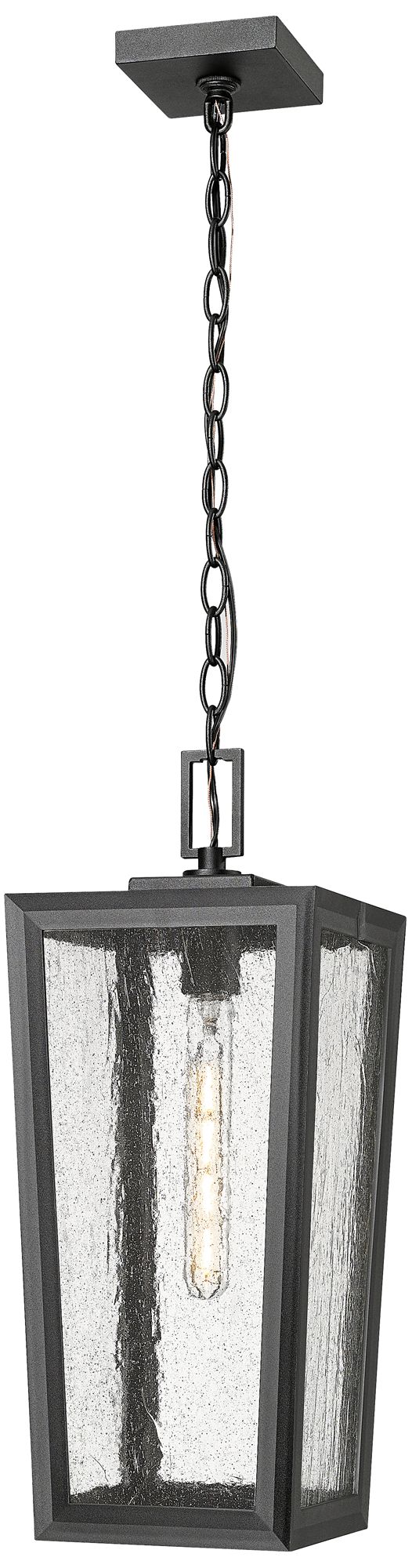 Madison 20" Matte Black Coastal Outdoor Pendant With Seeded Glass