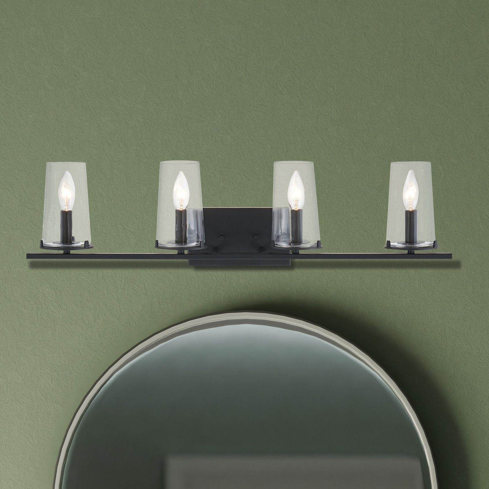 Thesis Jared 31-inch Matte Black Vanity Light with Clear Glass Shades