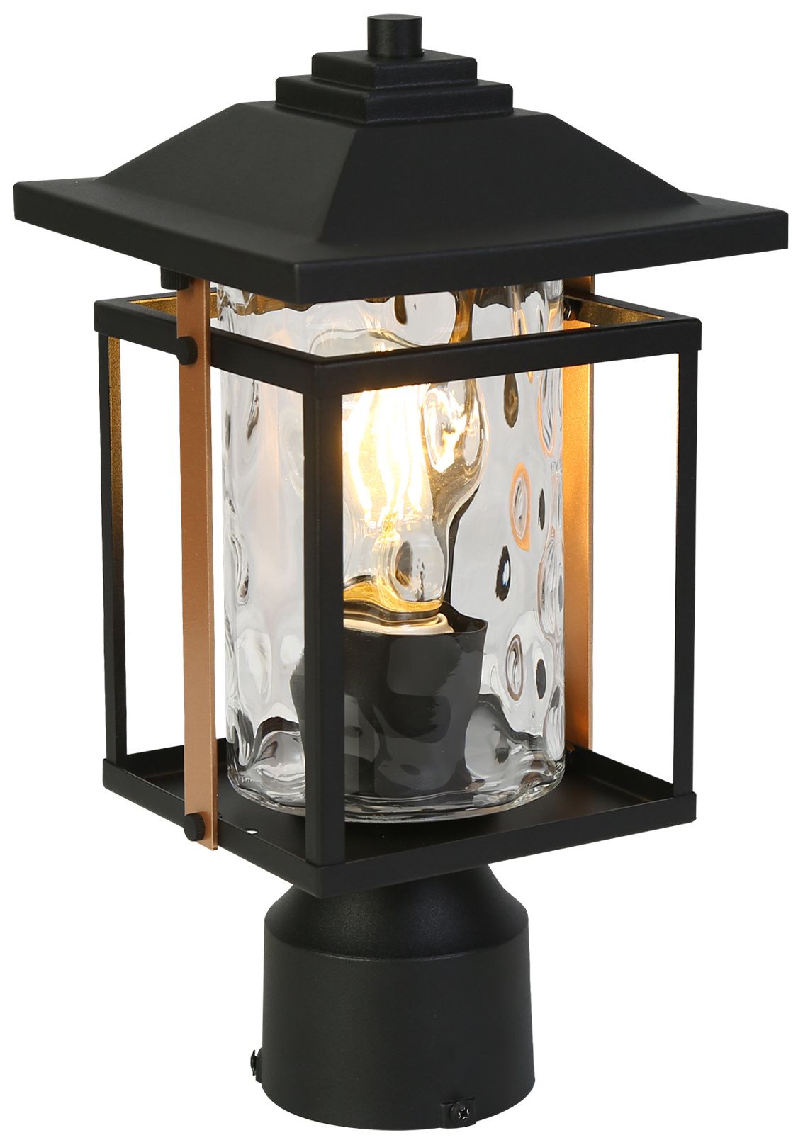 1-Light 12.6"H Pyramid top Black Post Lamp