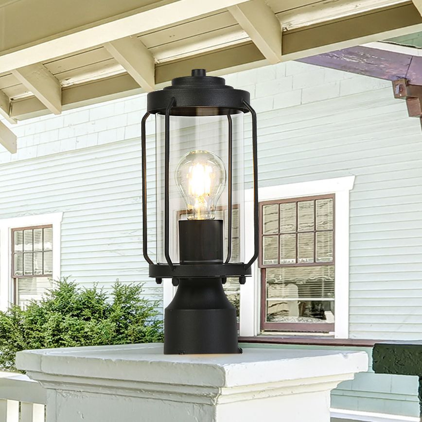 1-Light 12.6"H Cylinder Black Post Lamp