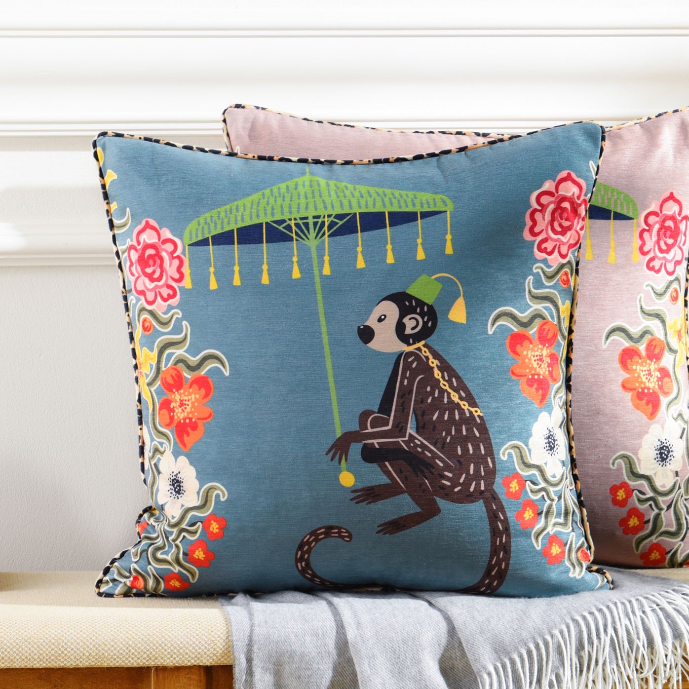 Maharaja Monkey 24 x 24 Blue Gray Pillow