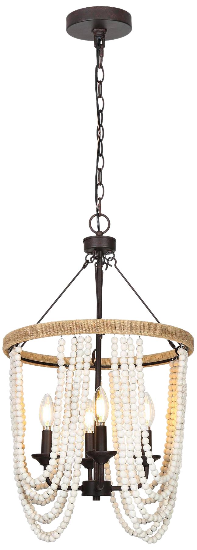 4-Light 15.7"W Waterfall Rattan and Rust Bronze Chandeliers