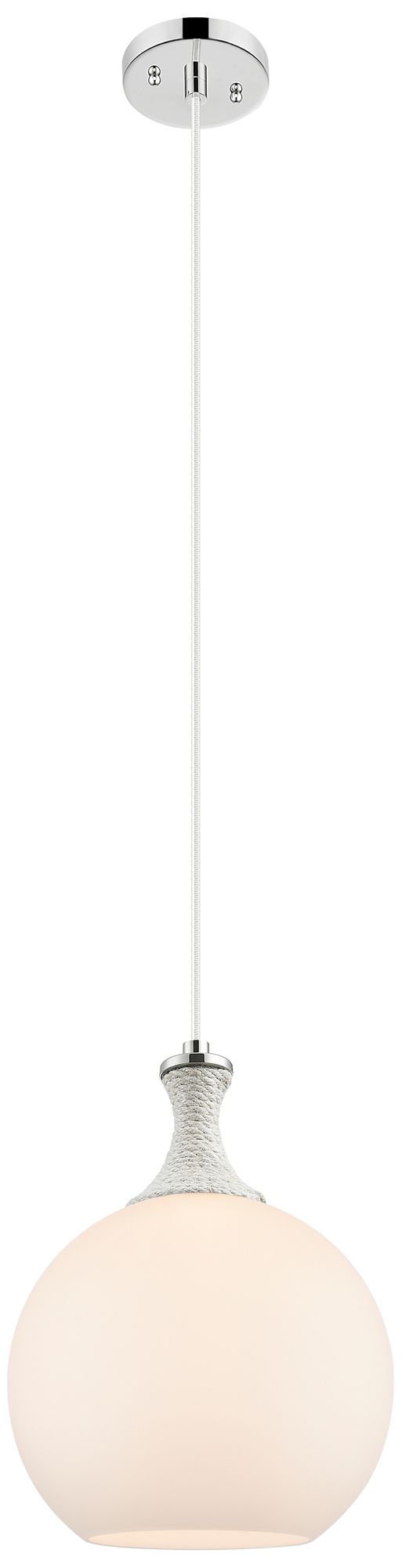 Astor 12"W Satin Nickel And White Rope Stem Mini Pendant w/ White Shade