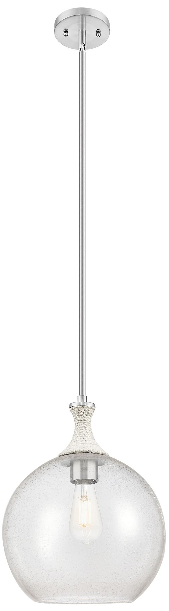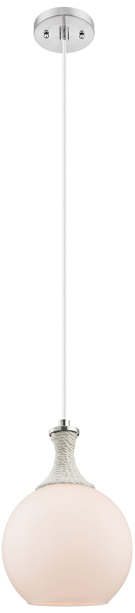 Astor 12"W Satin Nickel And White Rope Stem Mini Pendant w/ Seedy Shade
