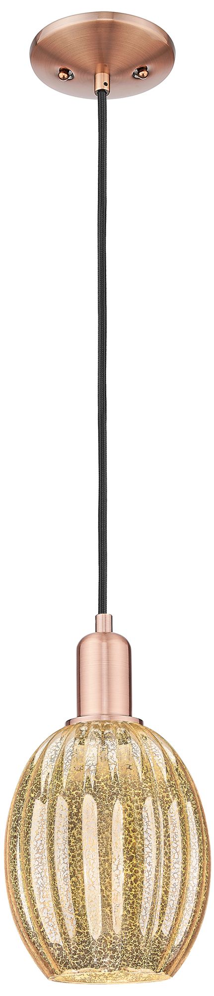 Preston 6"W Antique Copper Cord Mini Pendant With Bell Mecury Shade