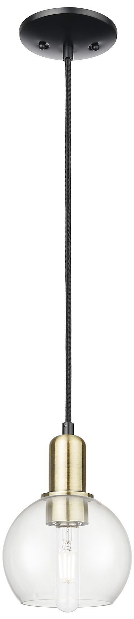 Arcadia Athens 6"W Black Brass Cord Hung Mini Pendant w/ Clear Shade