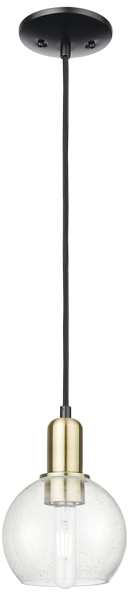 Arcadia Athens 6"W Black Brass Cord Hung Mini Pendant w/ Seedy Shade