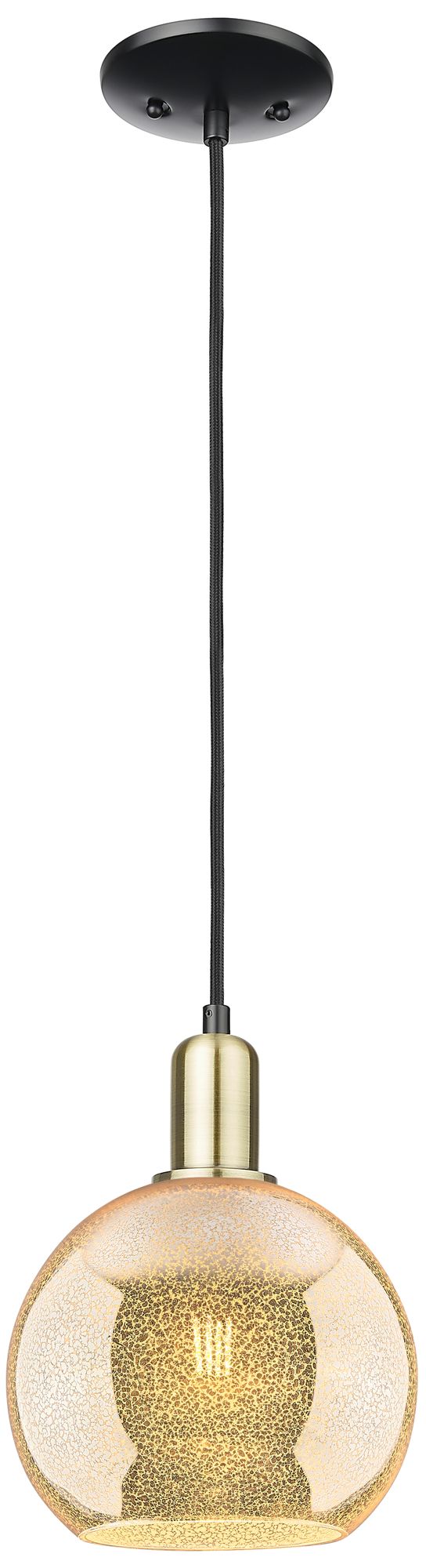 Arcadia Athens 8"W Black Brass Cord Hung Mini Pendant w/ Mercury Shade