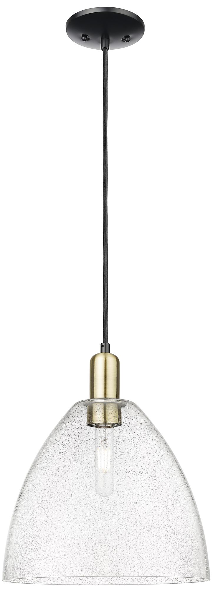 Arcadia Bristol 12"W Black Brass Cord Hung Mini Pendant w/ Seedy Shade