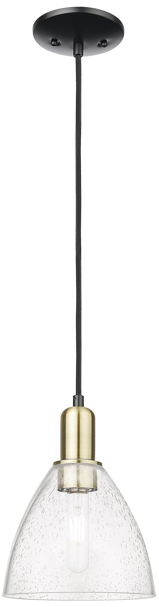 Arcadia Bristol 8"W Black Brass Cord Hung Mini Pendant w/ Seedy Shade