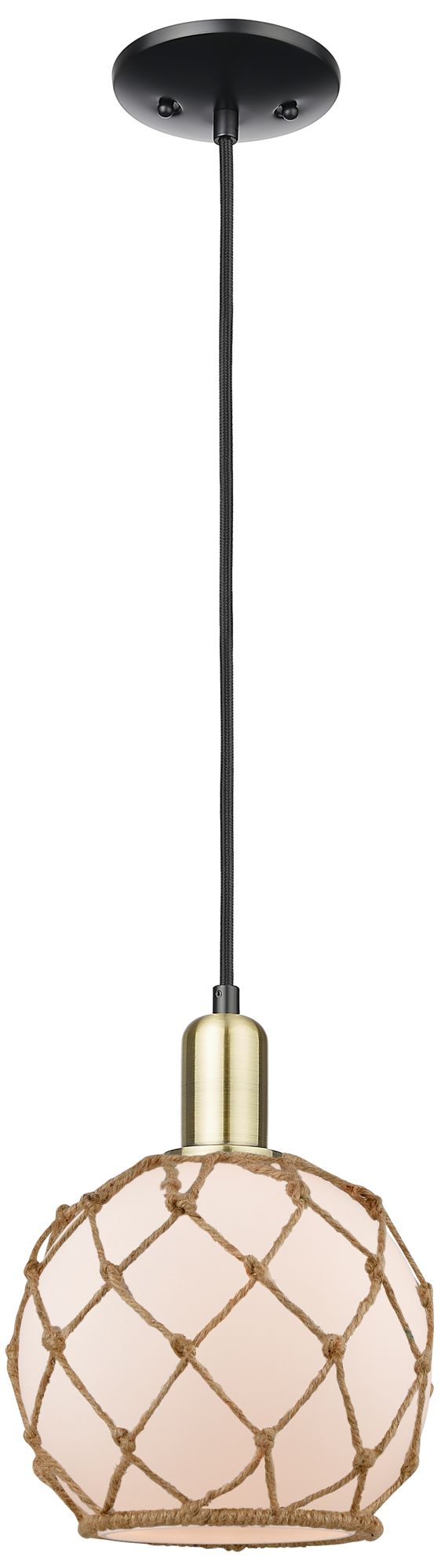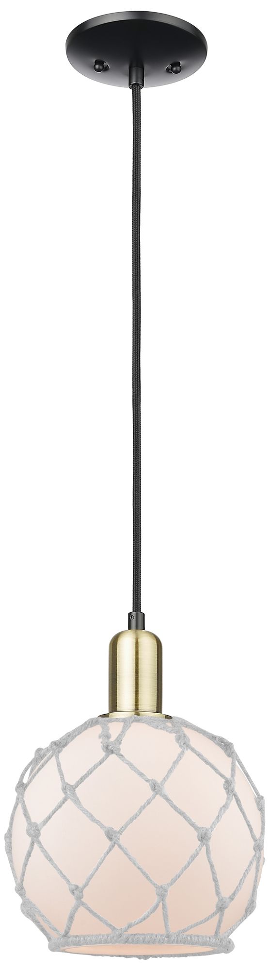 Arcadia Farmhouse Rope 8"W Black Brass Cord Pendant w/ White Shade