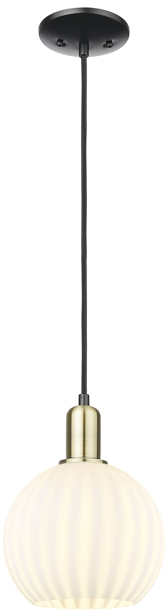 Arcadia White Venetian 8"W Black Antique Brass Cord Hung Mini Pendant