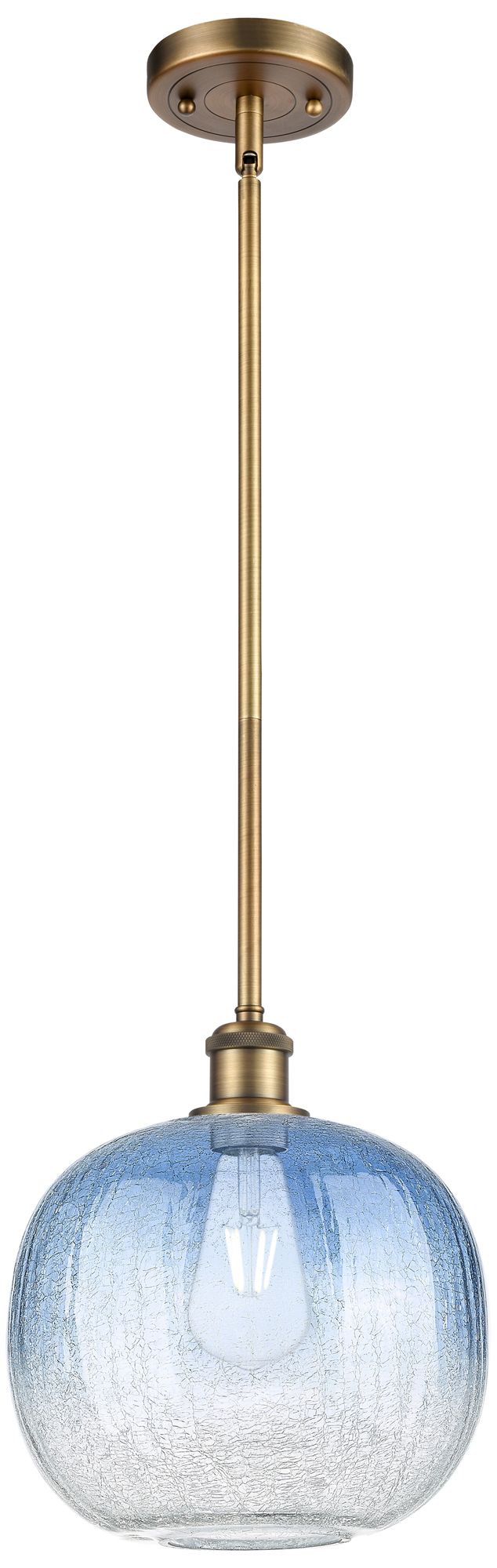 Ballston Brookhaven Sphere 11"W Brush Brass Stem Pendant w/ Sapphire Shade