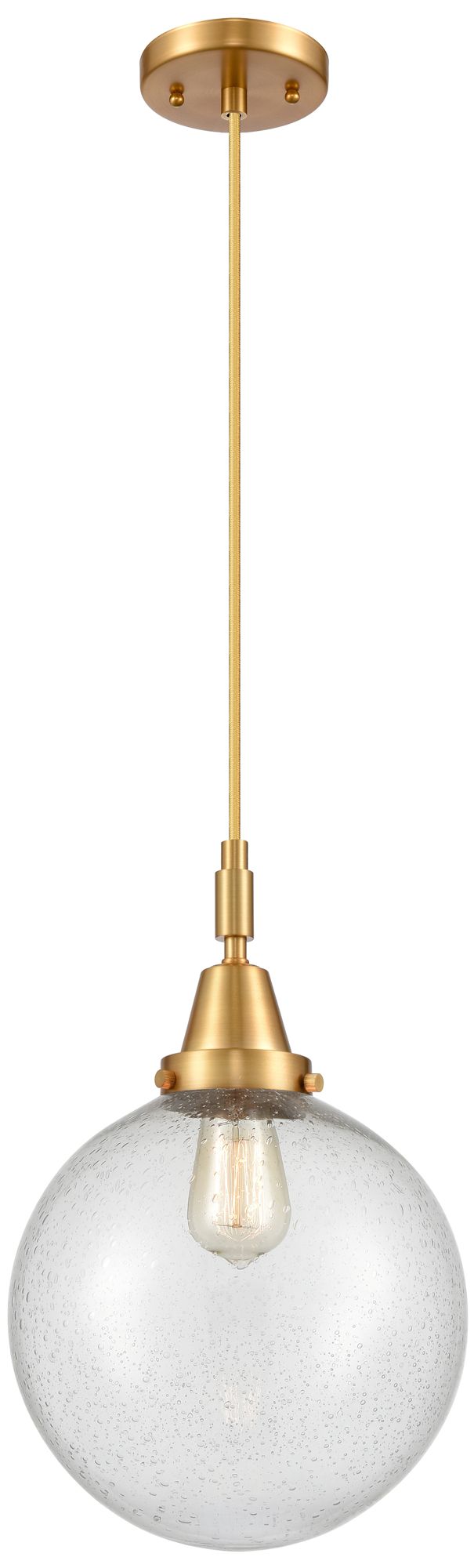 Downtown Caden Beacon 10"W Cord Satin Gold Mini Pendant w/ Seedy Shade