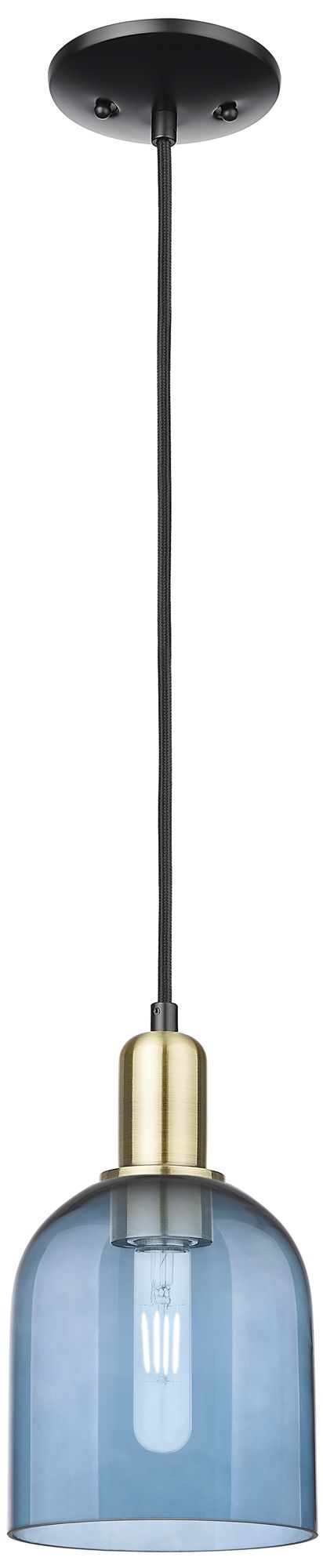 Arcadia Bella 6"W Black And Brass Cord Hung Mini Pendant w/ Blue Shade