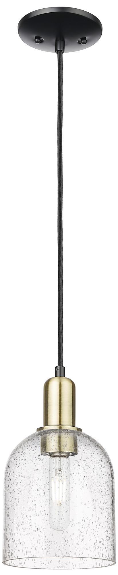 Arcadia Bella 6"W Black Brass Cord Hung Mini Pendant w/ Seedy Shade