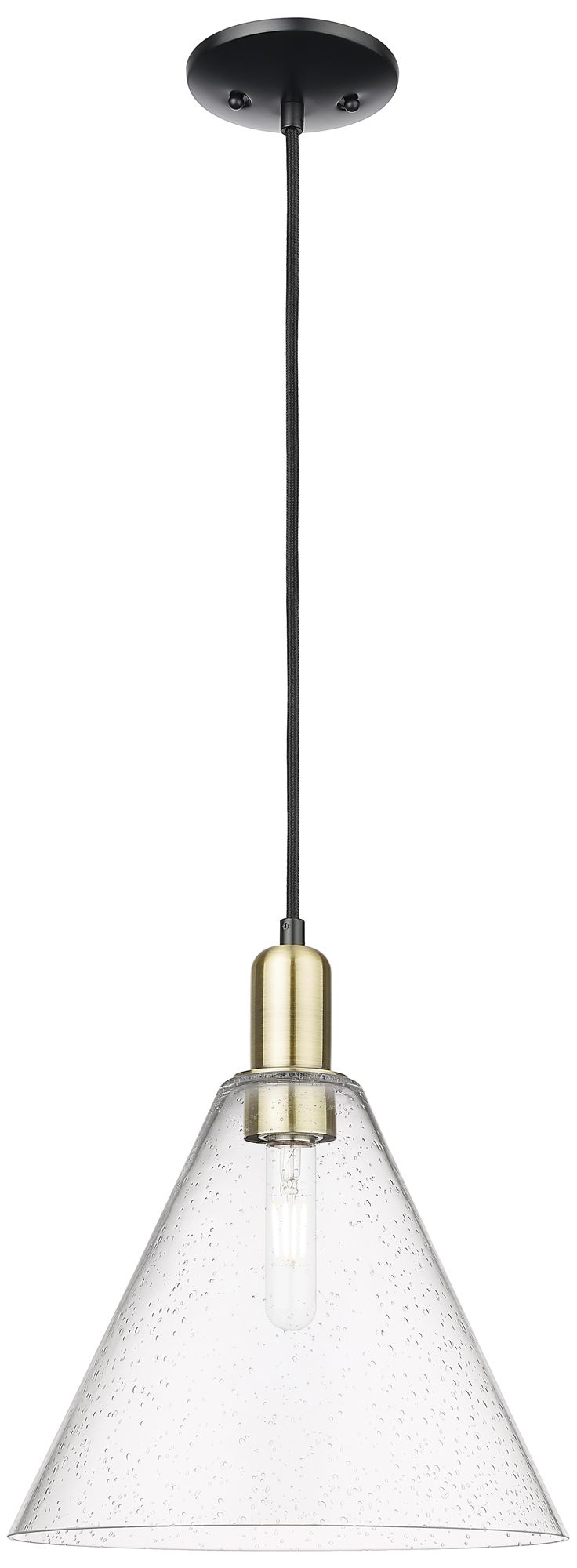 Arcadia Berkshire Glass 12"W Black Brass Cord Pendant w/ Seedy Shade