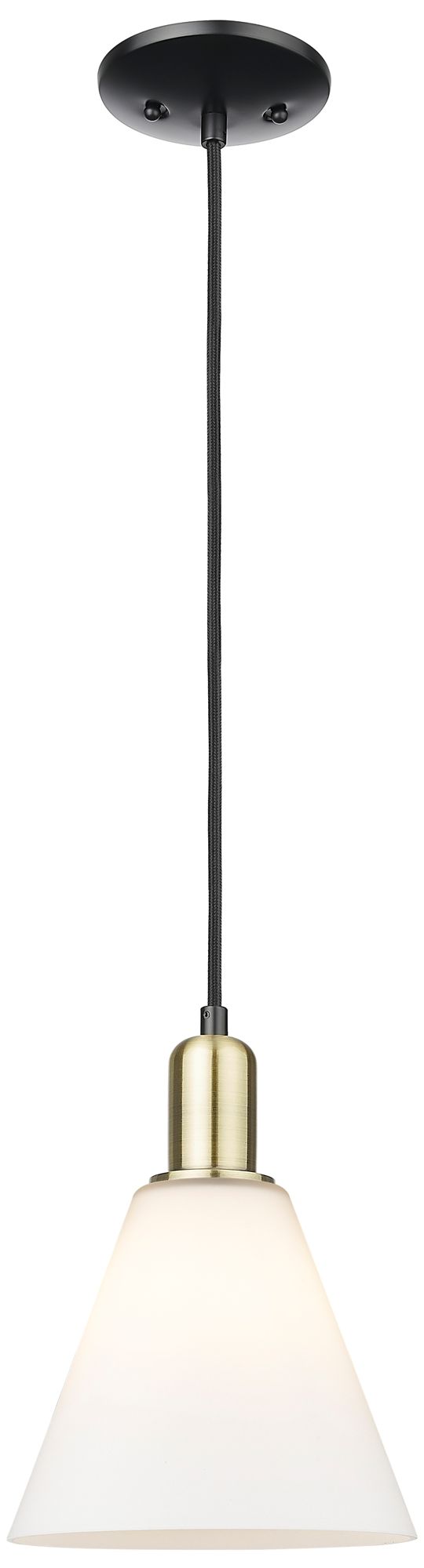Arcadia Berkshire Glass 8"W Black Brass Cord Pendant w/ White Shade