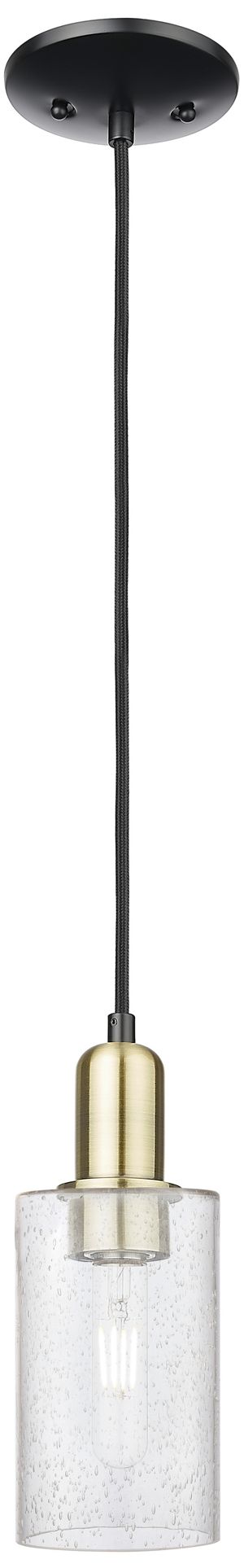 Arcadia Clymer 4"W Black Brass Cord Hung Mini Pendant w/ Seedy Shade