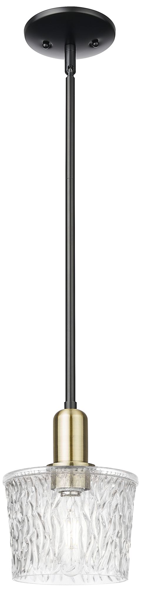 Arcadia Niagara 7"W Black Brass Stem Hung Mini Pendant w/ Clear Shade