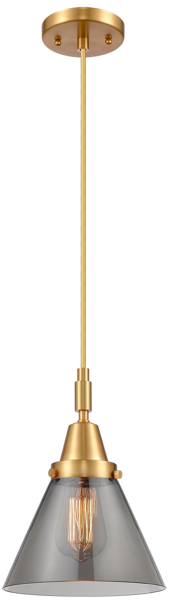 Downtown Caden Cone 8"W Cord Satin Gold Pendant w/ Light Smoke Shade