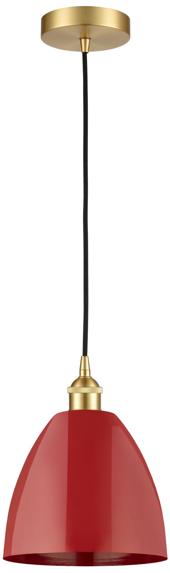 Edison Plymouth Dome 9"W Satin Gold Cord Hung Mini Pendant w/ Red Shad