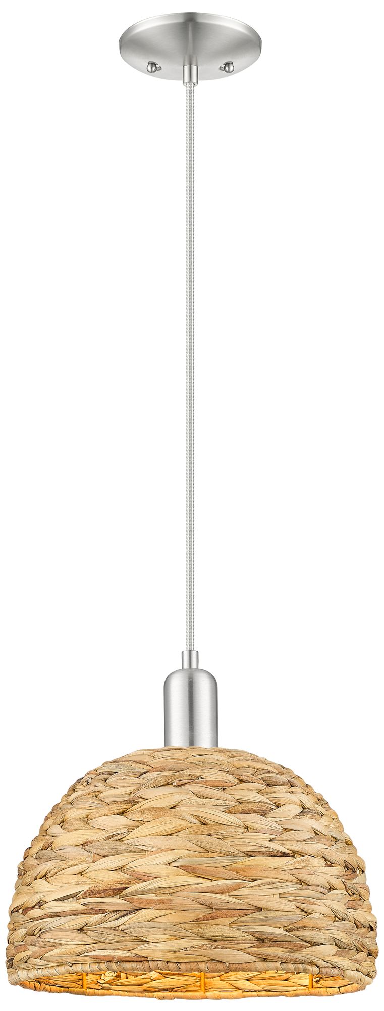 Arcadia Woven Rattan 12"W Brushed Satin Nickel Cord Hung Mini Pendant