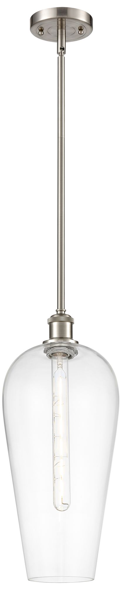 Chelsea 8" Wide Satin Nickel Stem Hung Mini Pendant with Clear Shade