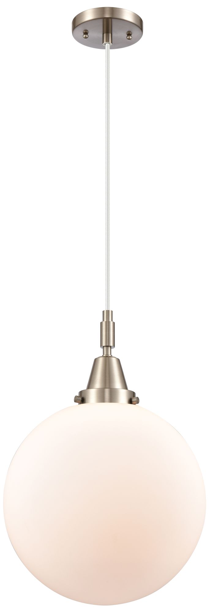Downtown Caden Beacon 12"W Cord Satin Nickel Pendant w/ White Shade