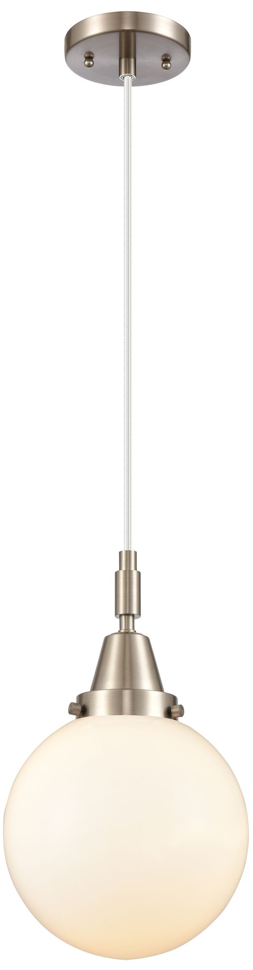 Downtown Caden Beacon 8"W Cord Satin Nickel Pendant w/ White Shade