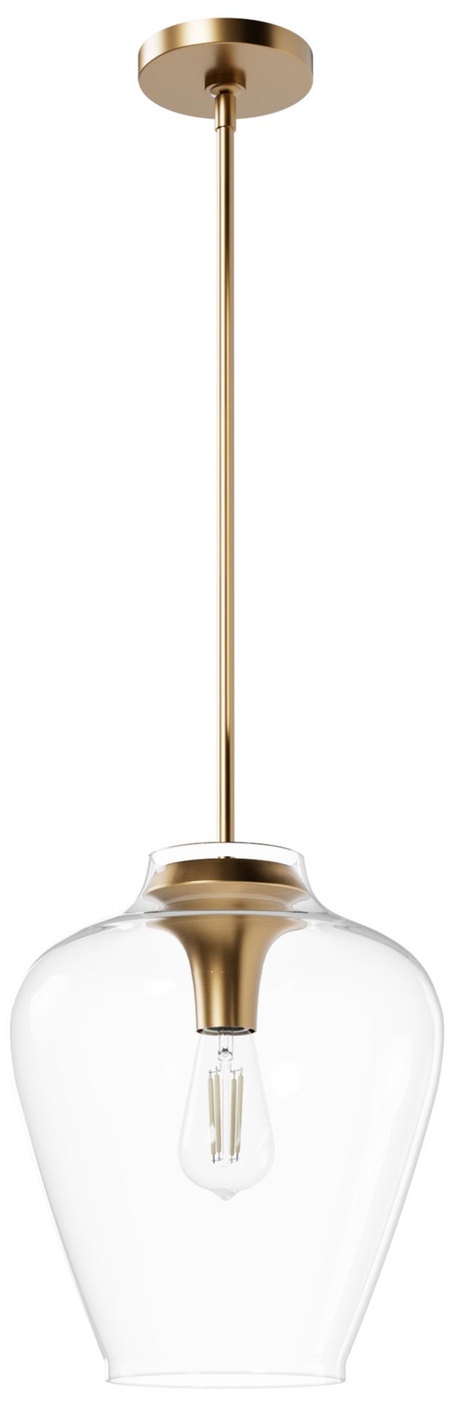 Ballston Bristol Glass 12" Mini Pendant - Brushed Brass - Clear Shade