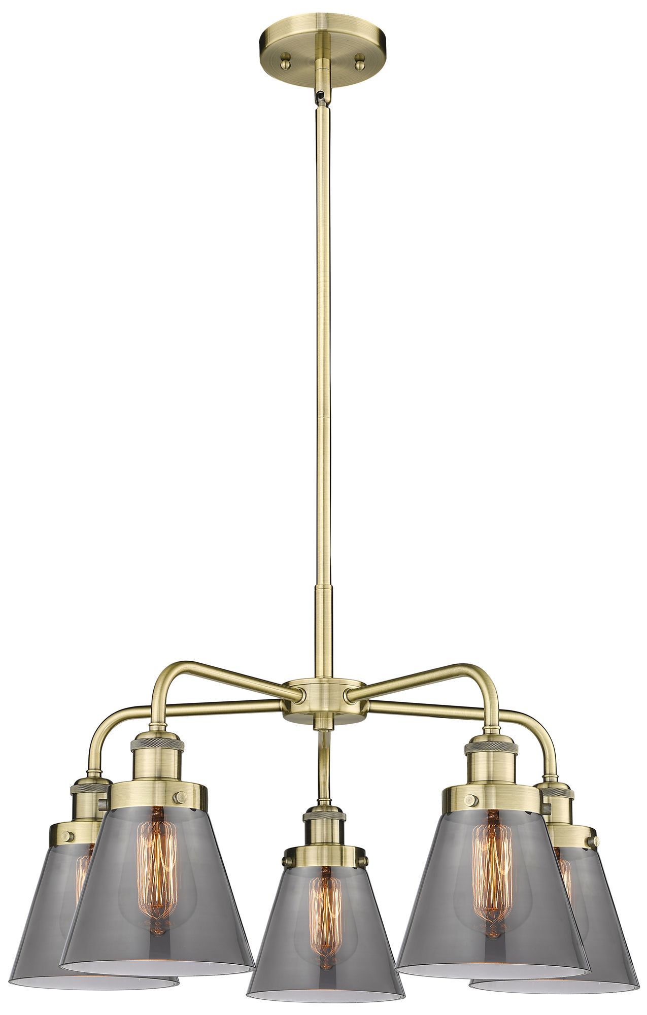 Cone 24.25"W 5 Light Antique Brass Stem Hung Chandelier w/ Smoke Shade