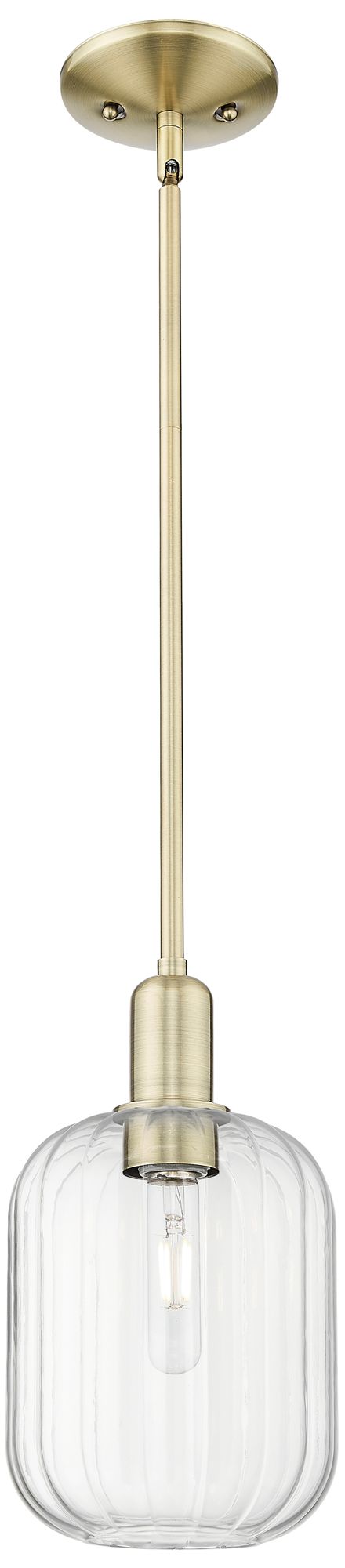 Preston 6.75"W Antique Brass Stem Mini Pendant With Jar Clear Shade