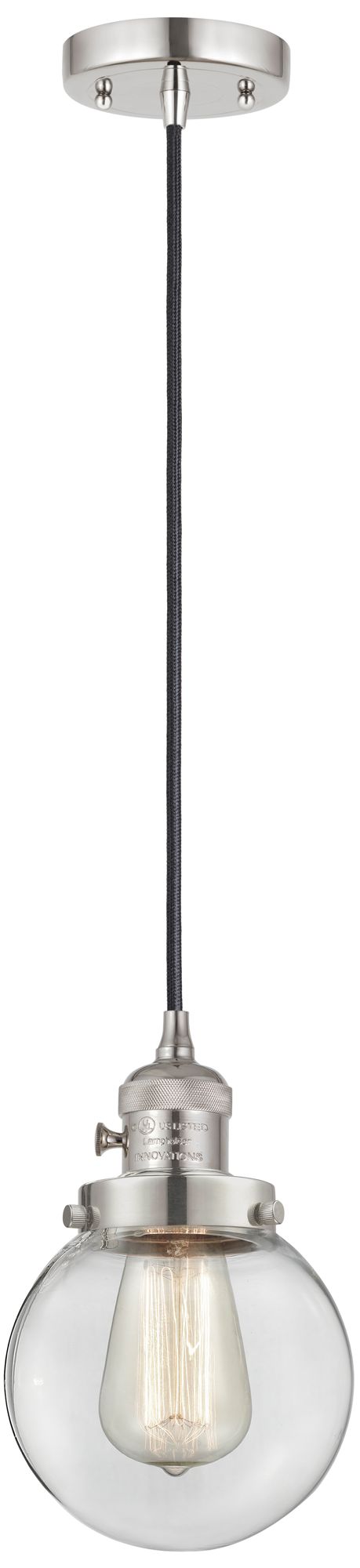 Eaton 6" Wide Polished Nickel Corded Mini Pendant w/ Clear Shade
