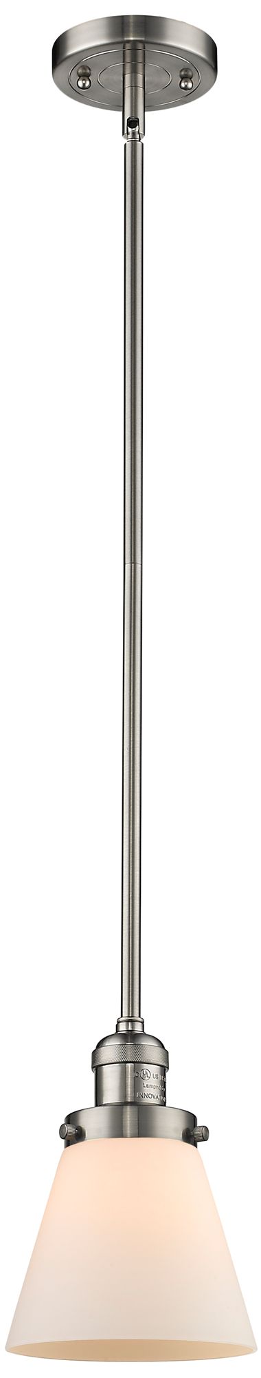 Franklin Restoration Cone 6" LED Mini Pendant - Satin Nickel - Matte White