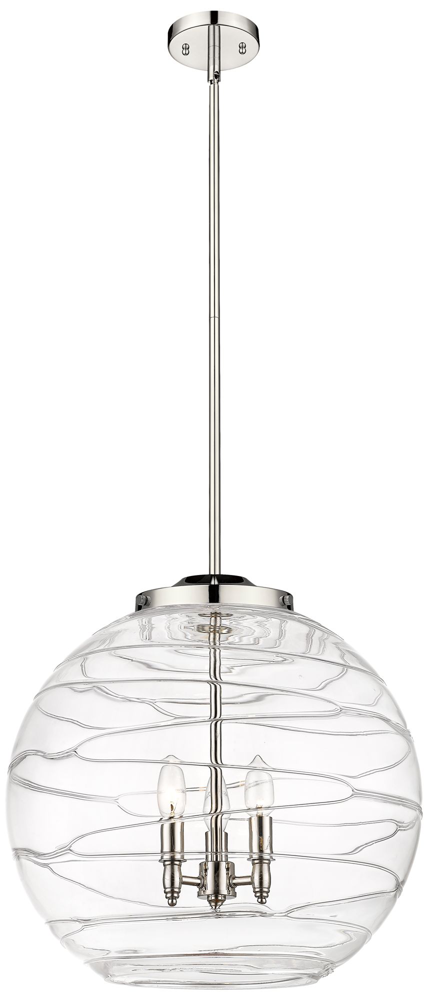 Athens 18" 3-Light Polished Nickel Pendant w/ Clear Deco Swirl Shade