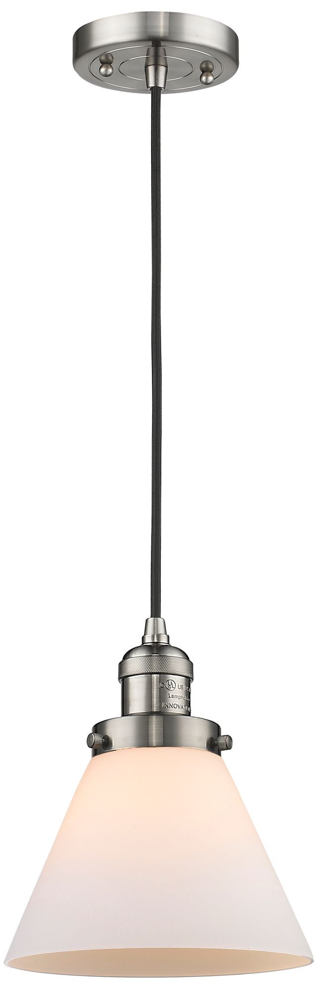 Franklin Restoration Cone 8" LED Mini Pendant - Satin Nickel - Matte White