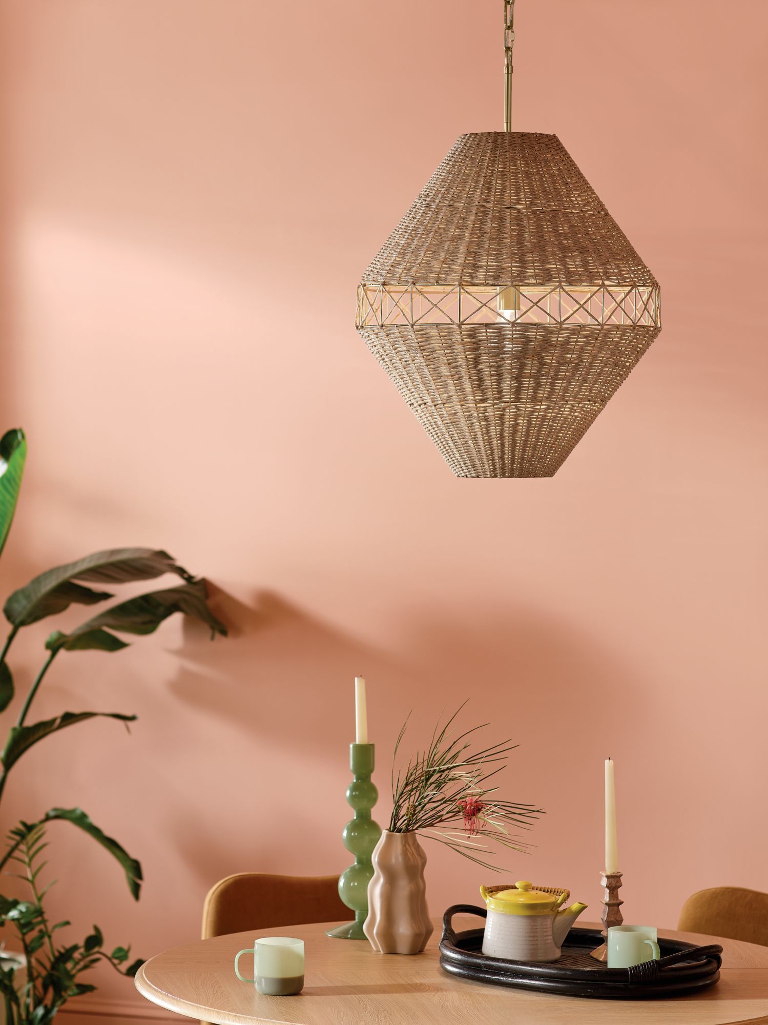 Polly Metal Chandelier (Blackened Brass with Rattan Shade)