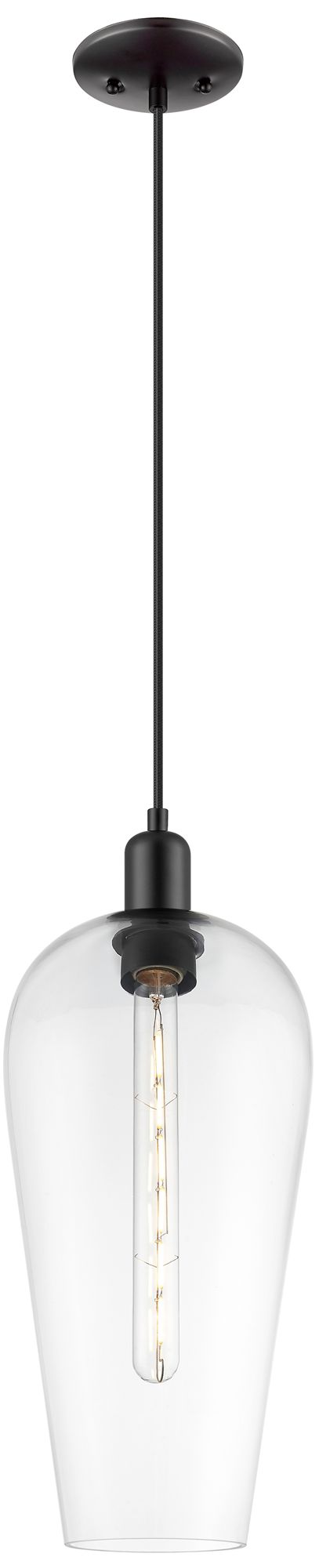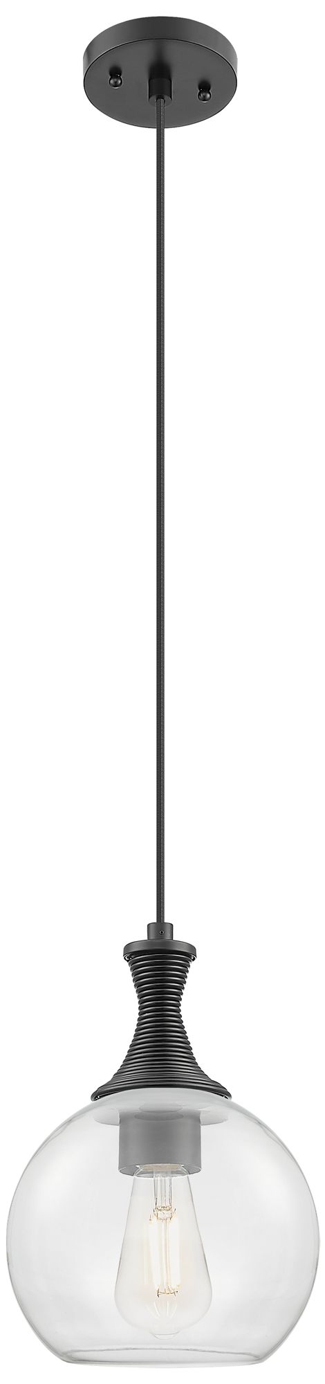 Downtown Astor 8"W Metal Cord Matte Black Mini Pendant w/ Clear Shade