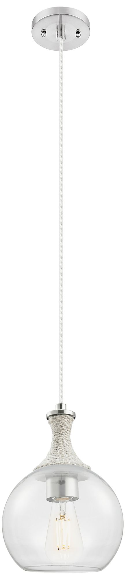 Downtown Astor 10"W White Rope Nickel Mini Pendant w/ Clear Shade
