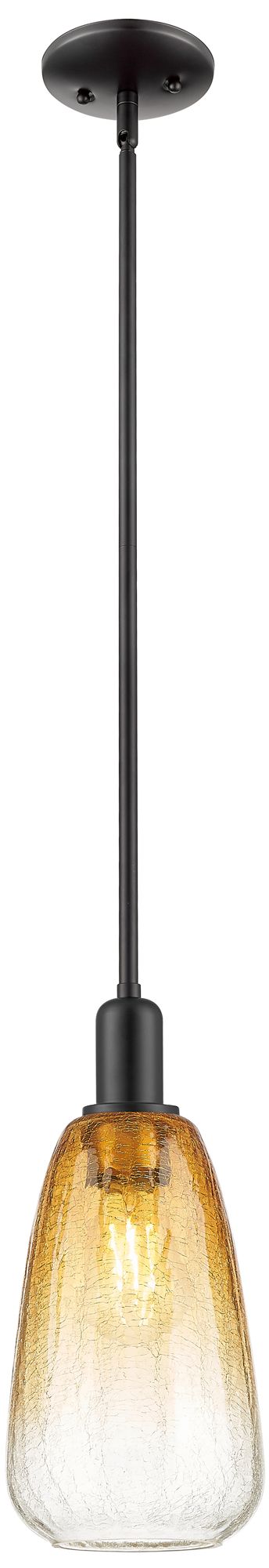 Downtown Brookhaven Almond 6"W Stem Black Mini Pendant w/ Amber Shade