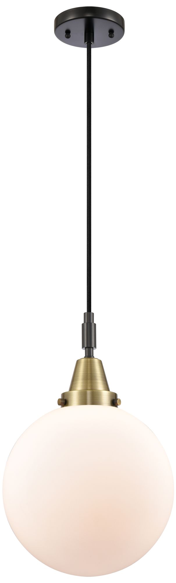 Downtown Caden Beacon 10"W Cord Black Brass Pendant w/ White Shade