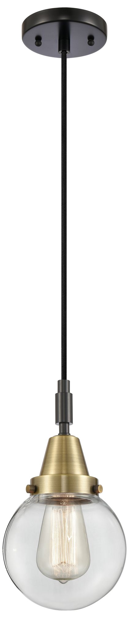 Downtown Caden Beacon 6"W Cord Black Brass Mini Pendant w/ Clear Shade