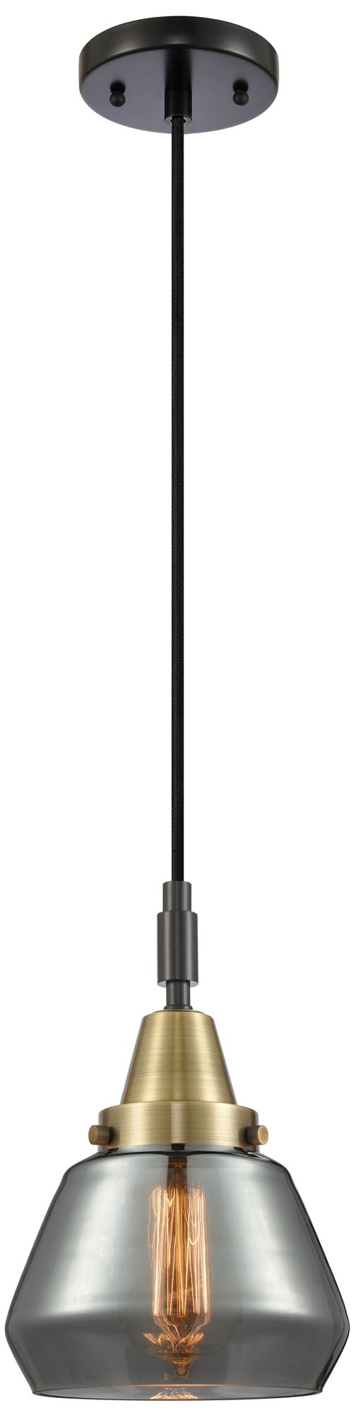 Downtown Caden Fulton 7"W Cord Black Brass Pendant w/ Light Smoke Shade