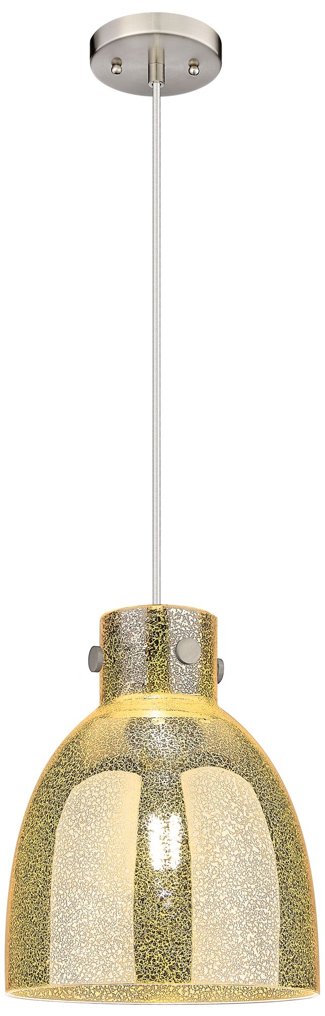 Downtown Newton Bell 10"W Cord Satin Nickel Pendant w/ Mercury Shade