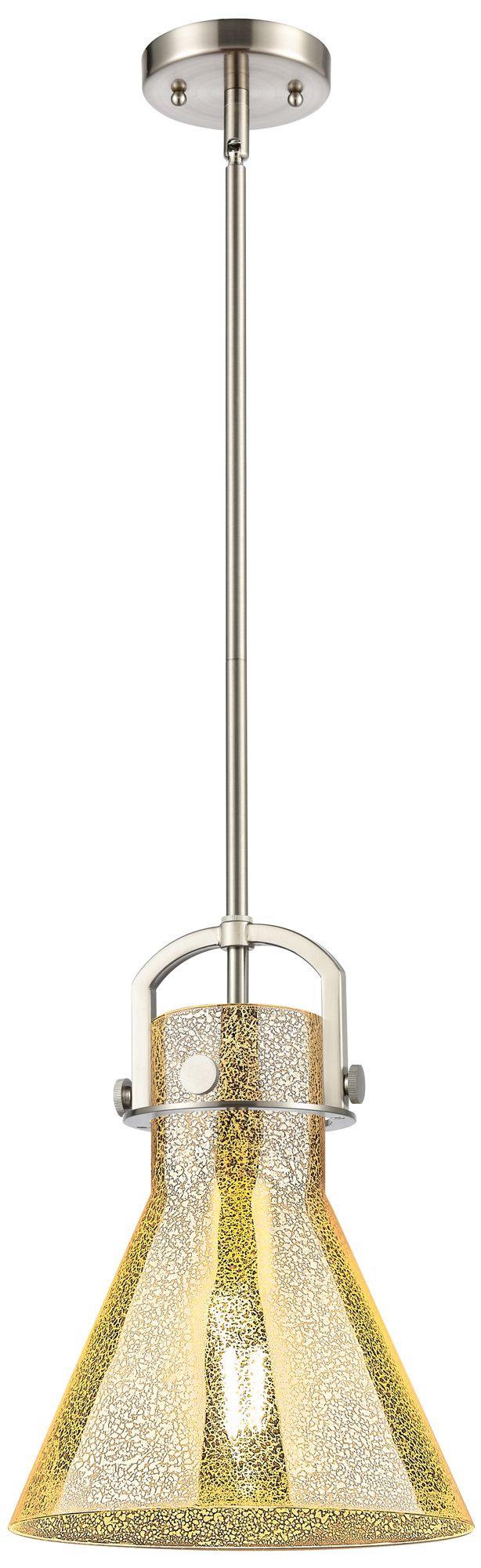 Downtown Newton Cone 10"W Satin Nickel Arch Pendant w/ Mercury Shade