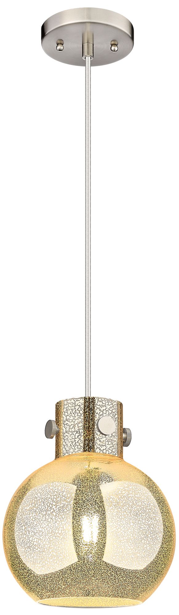 Downtown Newton Sphere 8"W Cord Satin Nickel Pendant w/ Mercury Shade