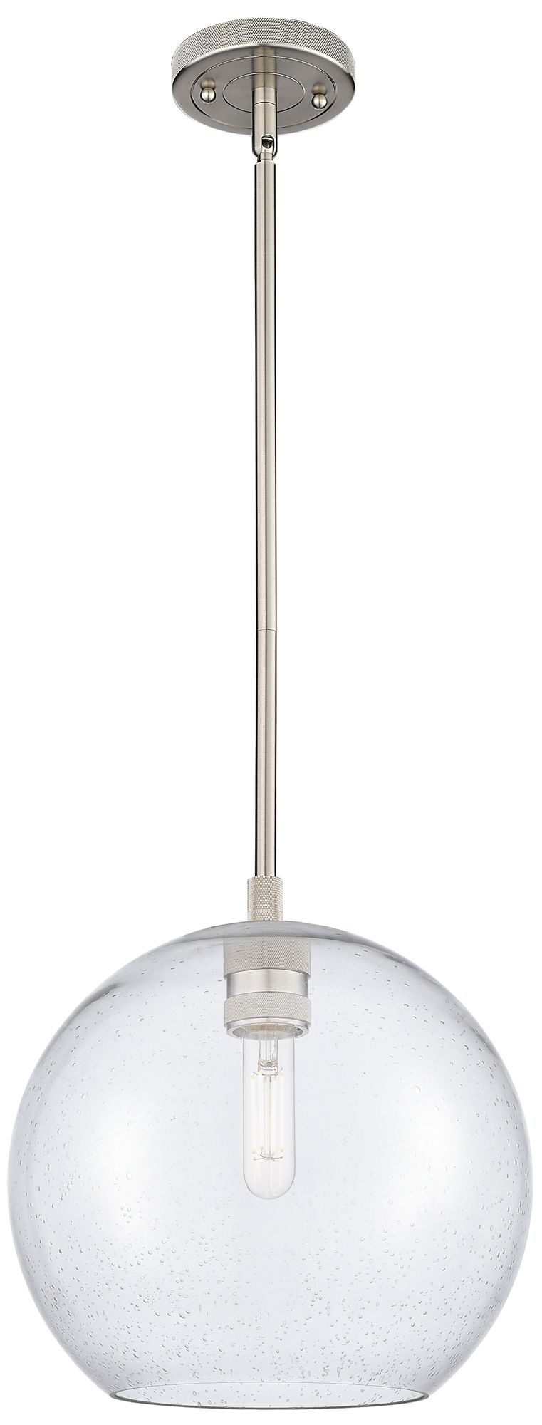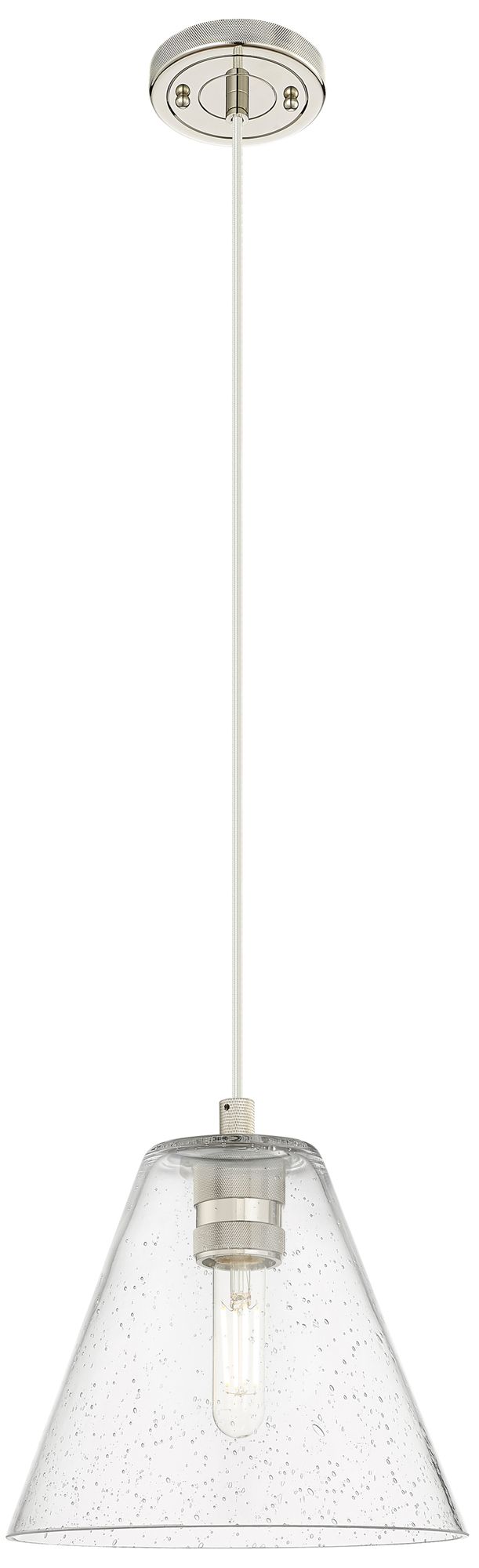 Crown Point Athens 12"W Polished Nickel Stem Pendant With Seedy Shade
