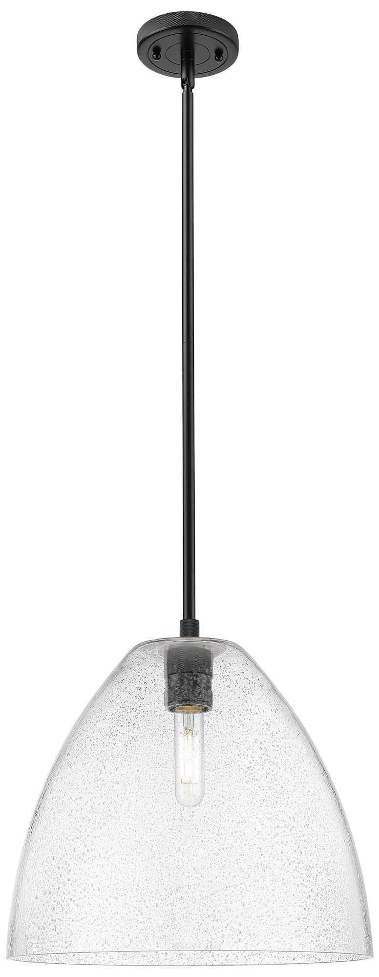 Crown Point Bristol 12"W Matte Black Stem Hung Pendant With Seedy Shade