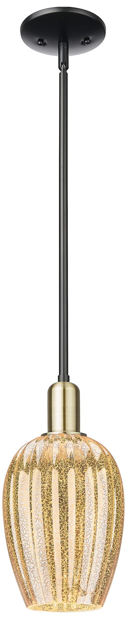 Preston 6"W Black Brass Stem Mini Pendant With Flute Mercury Shade
